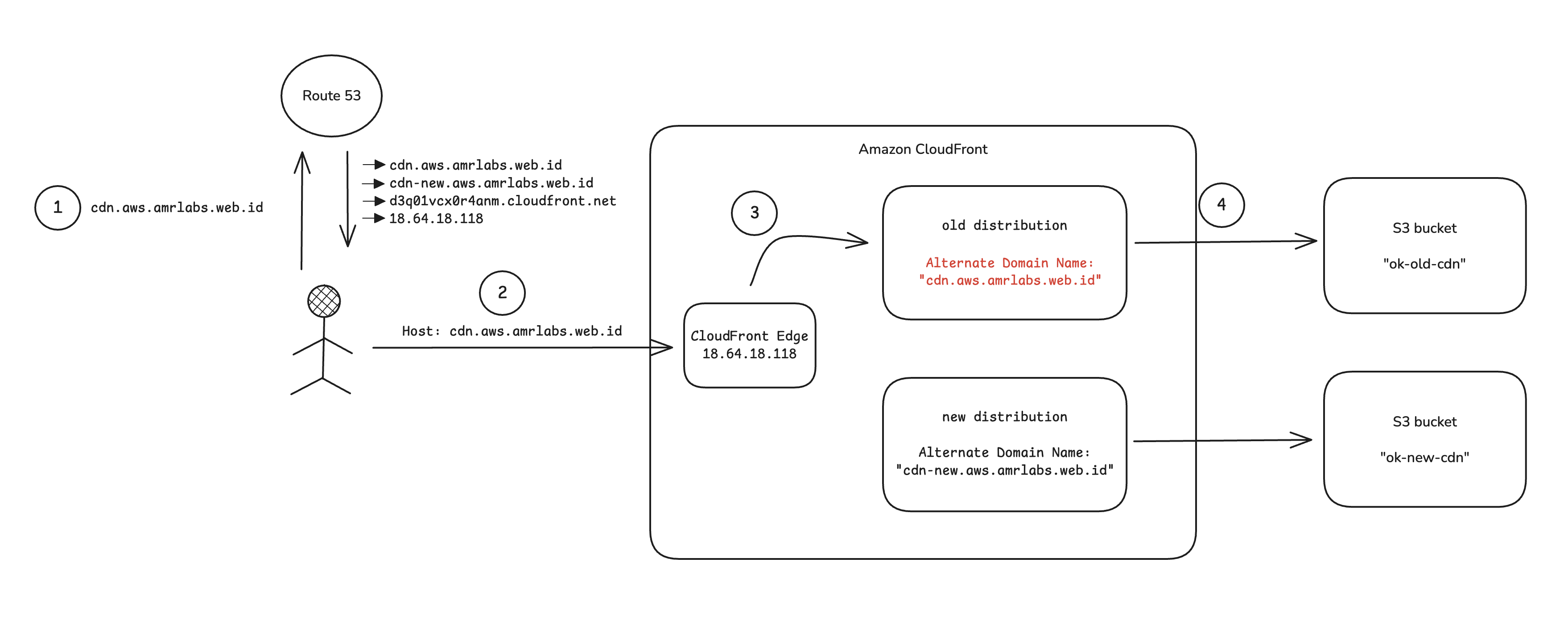 The phantom traffic he was seeing wasn’t just a simple case of DNS caching. The root cause was more subtle and was hiding in plain sight within the old CloudFront configuration: the Alternate Domain Name (cdn.aws.amrlabs.web.id) was still attached to the old distribution.
