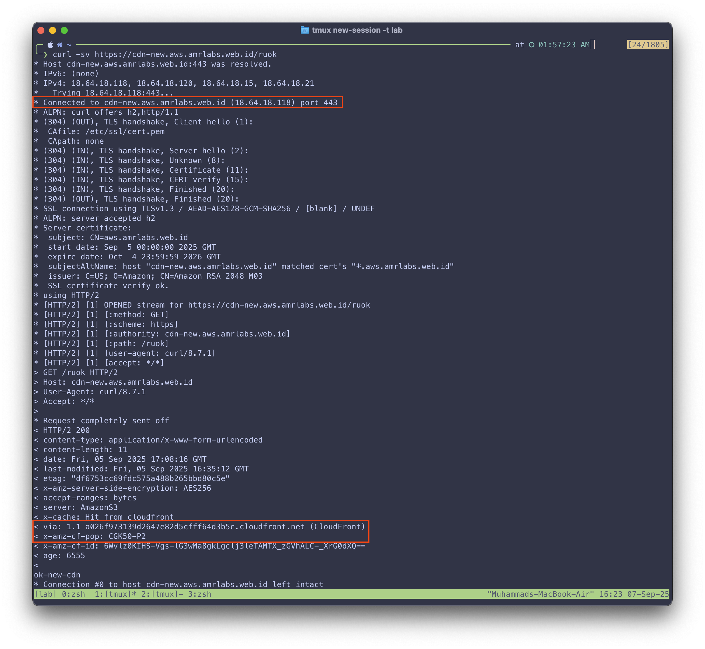 But curling the public-facing domain, which was CNAME’d to cdn-new.aws.amrlabs.web.id, gave a completely different result: